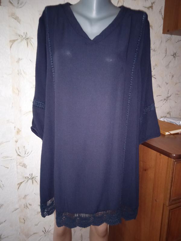 Размер на этикетке М, смотрите замеры. Ткань тонкая, не тянется, 100% вискоза жатка. Цвет темный синий. Состояние очень хорошее, без дефектов Длина от верхней точки плеча к низу 84. Длина рукава от плечевого шва 45. Полуобхват бицепса 24. Полуобхват груди 70. Полуобхват талии 69. Полуобхват внизу 72. Ширина между плечевыми швами 44. 42