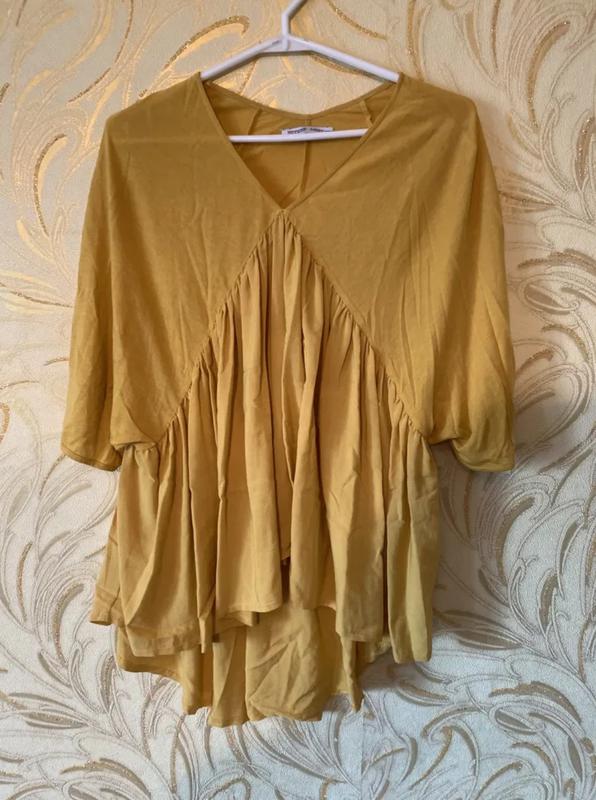 Солнечная блуза Zara. Оригинальная, очень красивая. V-образный вырез, сзади спинка длиннее. Размер M/S Oversize. Ткань комбинированная вискоза и полиэстер, плотный шифон, тактильно мягкая, лёгкая, приятная к телу. Производство Марокко. Состояние идеальное. Смотрите все мои объявления, много брендовой одежды, обуви и аксессуаров с Европы. Все детали покупки обсуждаем в приват до завершения сделки. Отправка после оплаты на карту. Обмена и возврата нет.
