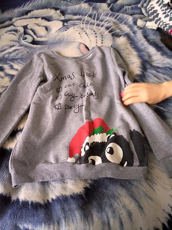 Ппрдам свитер оч интересный принт,всегда комплимент на размер с,м,пподаю т к мал после родов,в состав входит хлопок,поэтому есть легкая катышка,можно убрать,цена символическая