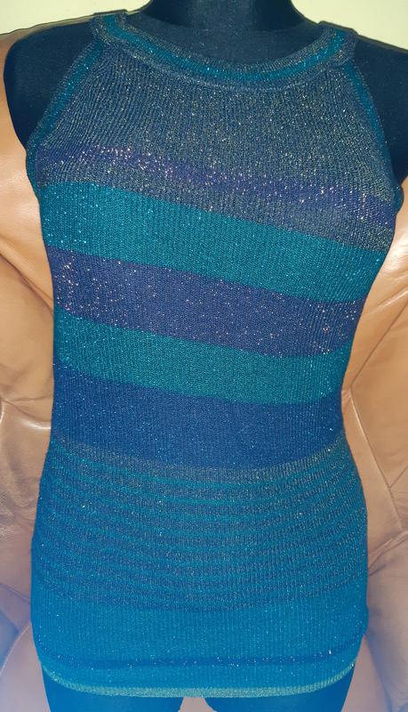 Бірюзовий топ люрекс Next р10-38 стан відмінний весь 70см груди 39-55см бедра 43-55см 38%віскоза 38%акрил 16%поліестр 8%фібра