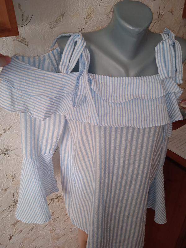 Евро размер 44, смотрите замеры. Новая, с этикетками. Ткань тонкая, не тянется, 90% полиэстер, 10% хлопок. Длина регулируется завязками на плечах. Длина от подмышки к низу 59. Длина рукава 49. Полуобхват бицепса 18. Полуобхват груди 54. Полуобхват талии 57. Полуобхват бедер 61. 44.
