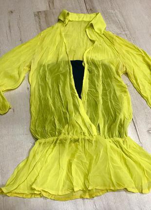 Стильна річ, можна носити як туніку , і як сорочку заправивши низ в штани , топ пришитий , темно синього кольору , біля грудей на резинці ширина топа 30 см+ 20 см тягнеться , довжина топа 30 см, ширина плечей на сорочці 38 см, довжина рукава 40 см, низ рукава на резинці ширина 13 см+12 см тягнеться , ширина на талії 33 см +20 см тягнеться , довжина сорочки з баскою 73 см, висота баски 16 см, ширина грудей 50 см