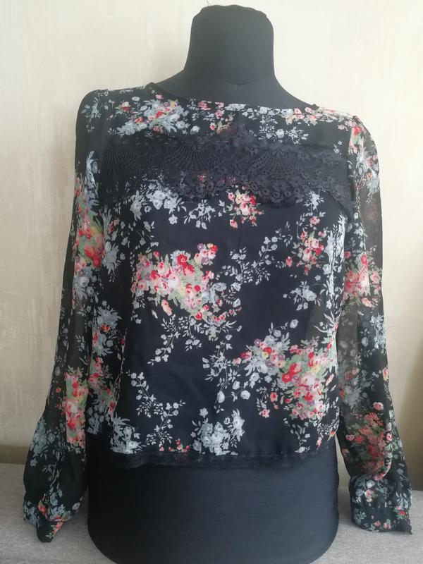 Рубашка шифон. Размер s. Сзади застегивается на 2 пуговицы, приоткрытая спина. Спереди вставки кружева