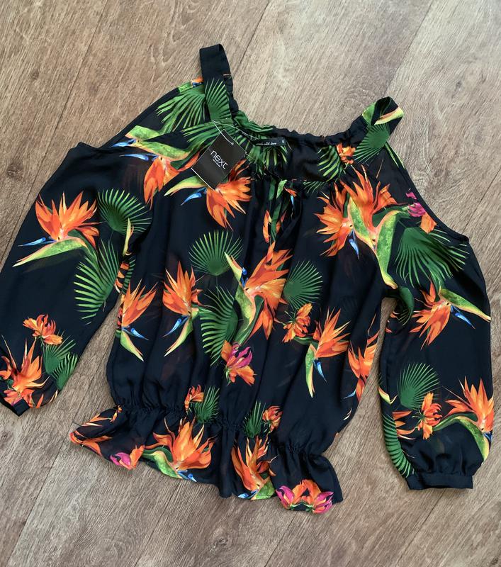 Блузка фирмы Next, размер М, длина 54 см, ПОГ 47 см, плечи открыты, на талии резинка, Блуза свободного фасона