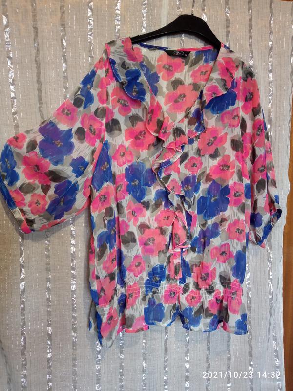 красивая лёгкая,рукав тричетверти на пуговичке,внизу блуза на трёх резиночках,длина рукава -39см,длина блузы -66см,пог-63см,поб-66см