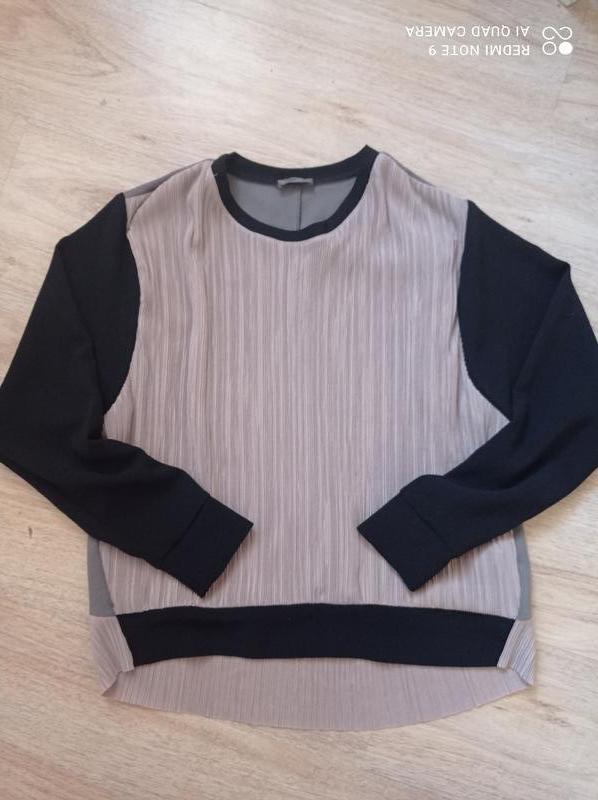 Оригинальная блуза свободного кроя,зад длиннее, ткань немного тянется и достаточно плотная ,рукав на манжете, состояние идеальное