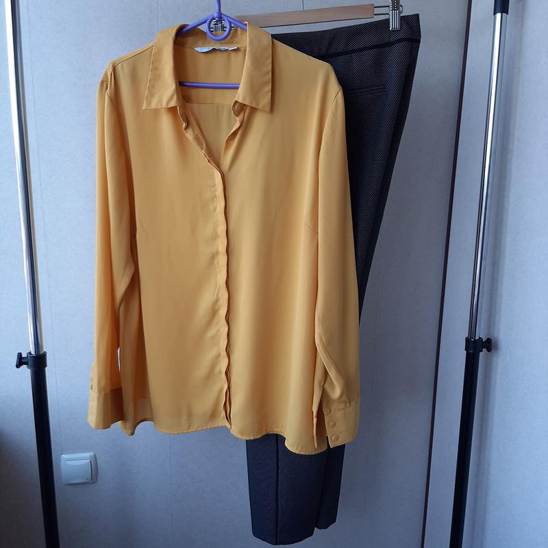 Шифоновая блуза рубашка желтая UK 18 ОГ: 124 см OT: 122 см ОБ: 122 см Длина рукава : 64 см Длина :72 см Состав: полиэстер Цена:145 грн