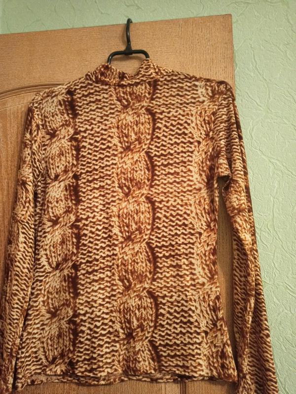 Не в'ється язаний, текстиль. Тканина тоненька, приємна до тіла, півокружність в спокійному стані 40 см, тягнеться до 47 див. Бренд не визначений.