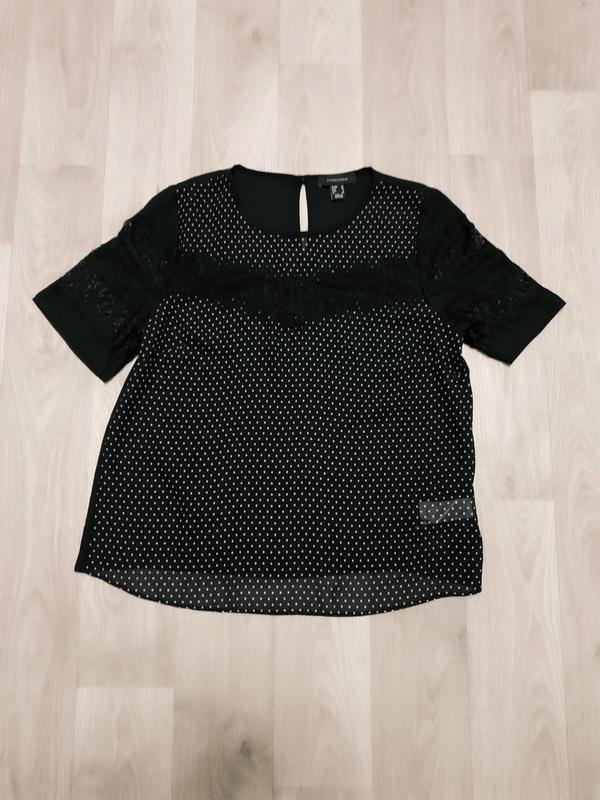 Блузка женская , в горошек . На рукавах гипюровые вставки .