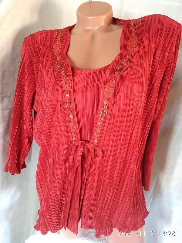 Блуза пліссе, дуже добре тягнеться Плечі 46 см ПОГ 59-85 см Довжина 64 см Рукав 47 см Прохання перед замовленням уточняти деталі. Відправка тільки Укрпоштою!!! З безпечною оплатою не працюю, бо немає технічної можливості
