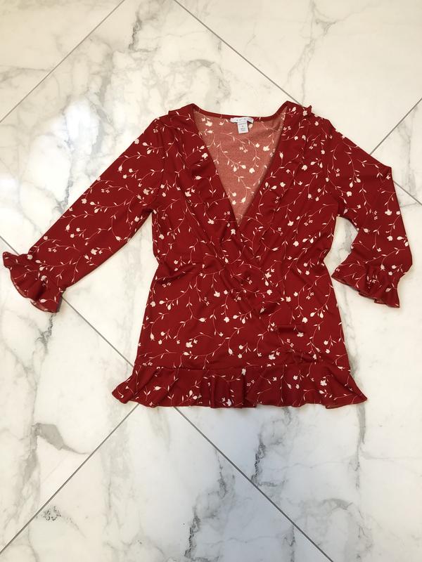Червона блузка з принтом в ідеальному стані, чудово підійде як під штани так і під спідницю.