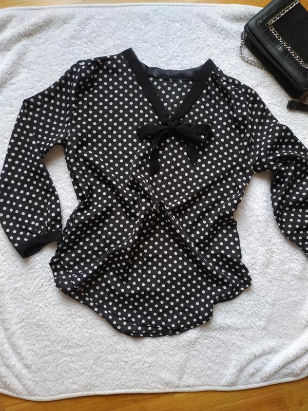 Елегантна чорна блуза в білий горох.
