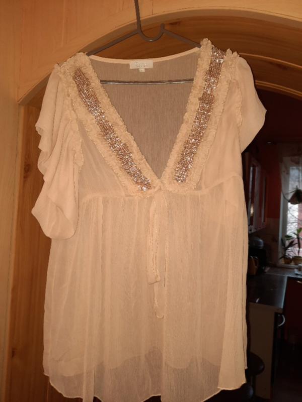 блузка з вирвзом і паєтками полупрозрачга