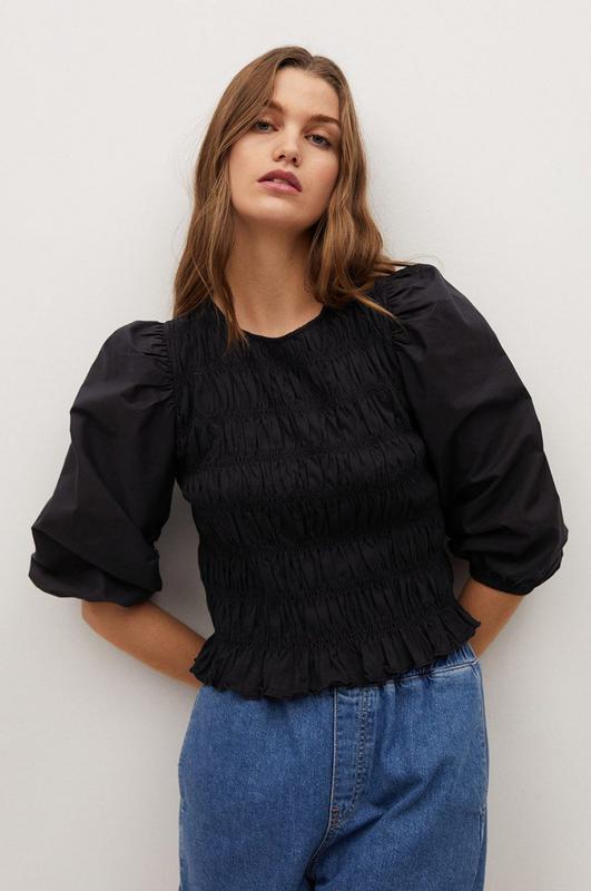 Новая блуза Mango с объемными рукавами , спереди жатка 100% organic cotton, новая с биркой.