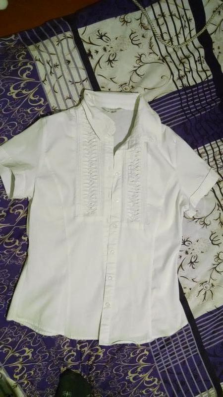 Белоснежная блуза от next с коротким рукавом.Очень хорошего качества ткань .За счет покроя приталенная , низ слегка заокруглен.Розмер указан 40 ,но по моему больше к М. Ориентируйтесь пожалуйста на замеры. Ширина плеч 38см Длина рукава от плеча 17см ПоГр 46см Талия 41см По низу 49 Длина блузы от плеча 59 см .