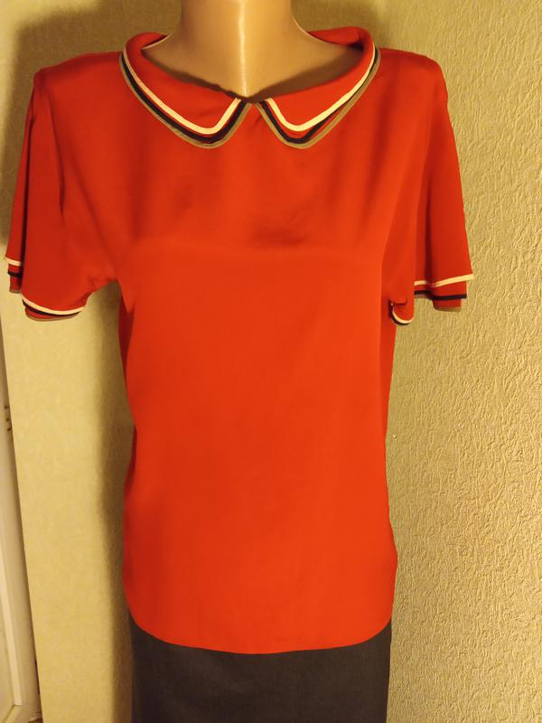 Пог 47, пот и поб ( внизу) 45см., длина рукава 18, полуширина внизу рукава 18, ширина плечей 42см., длина 60см. Рукава тройные, каждый слой отделан кантом разного цвета, воротник двойной. На последнем фото ( на спинке) небольшая чёрная точка, учтено. Очень изящная!