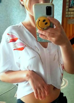 Нежный красивый топ. Белый в нежные цветочки. Идеальное состояние. Размер М.
