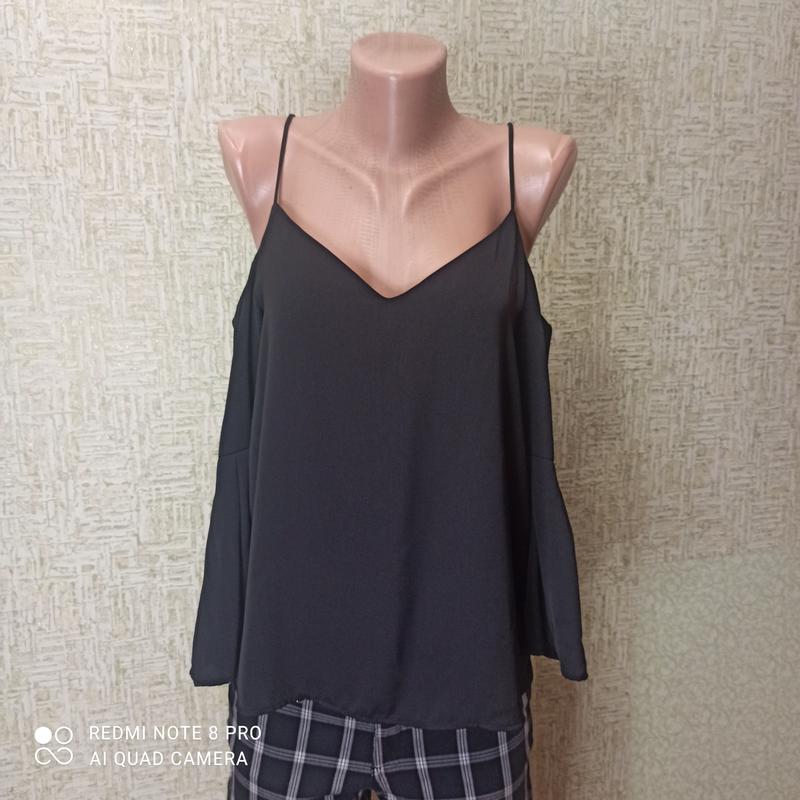 Красивая блуза-майка от бренда H&M.Размер указан 36(S/XS),к низу слегка расклешенная, очень красивые оригинальные рукава.Блузка 100% полиэстер,не тянется. Состояние очень хорошее.Длина с брителями 60 см,ширина по пройме 48 см,по низу 53 см, длина рукава по низу 32 см.