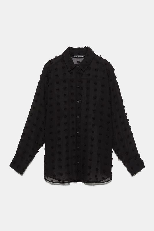 Текстурована сорочка блуза чорна в горошок шифон прозора zara