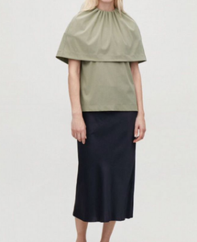 Оливковая блуза с оригинальным воротником. Совмещение классики с нестандартным кроем.