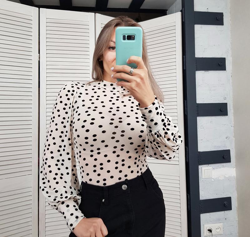 Блуза сеточка в горох Состав: Сетка. Горох-флок, Тянется. Замеры: по груди 34 см, талии 29 см, бедрам 34 см, длина по линии середины спинки 60 см., Размер указан 6й (XS) Пойдет и на S, M. Одета на параметры 95*69*97 см, Рост 163 см На 10 размер. Отправка Новой почтой, Укрпочтой - каждый день. Justin -по вторникам Самовывоз: г. Днепр. Оплата на карту Приват банка. Полная либо наложкой по 100 грн предоплате. Подписывайтесь- будет еще много интересных классных вещей.
