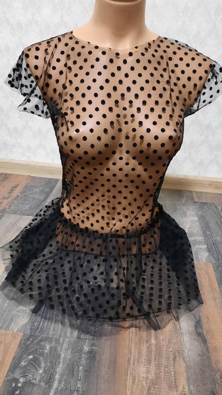 Блуза сетка в бархатный горошек. Длина блузы -68см. Обхват груди 90-100см. Очень нарядная. Нижняя часть сетки с рюшеми и с фатином.