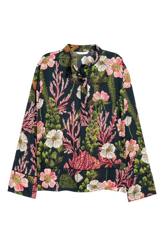 Прямая блузка из тканого материала с набивным рисунком. Низкий воротник стойка и потайная застежка сверху. Длинные рукава с манжетами. длинна 59 см. пог 55 см. плечо спущенно длинна от горловины до конца рукава 71 см. СоставПолиэстер 100%