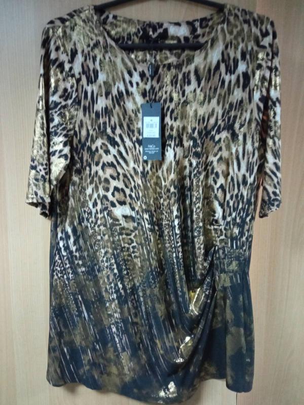 Нарядная кофточка большого размера с золотыми бликами,стрейч, сбоку на животе присборено.ОГ 98,ОБ104,рукав 31,длина 69,