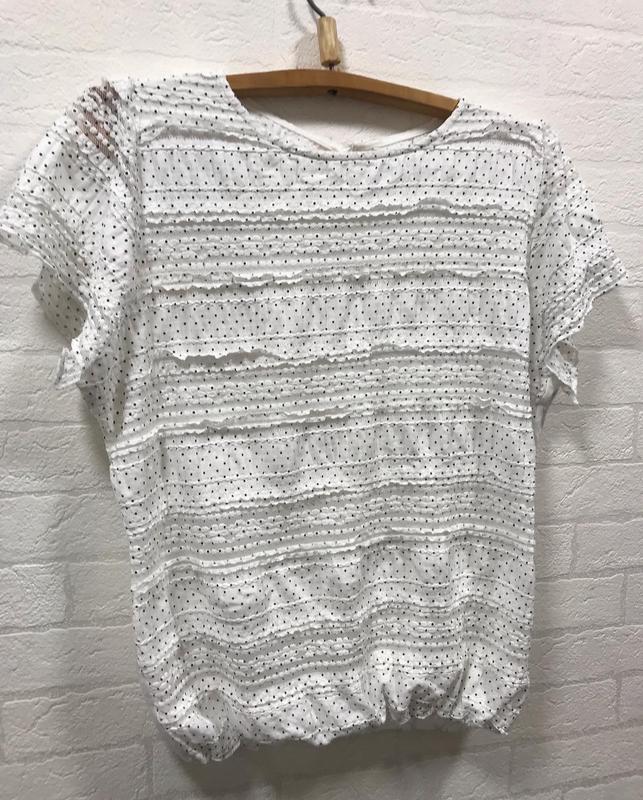 Блуза на літо , романтична, з рюшами та горошком , пОГ-58; довжина -63, низ на гумовій стрічці