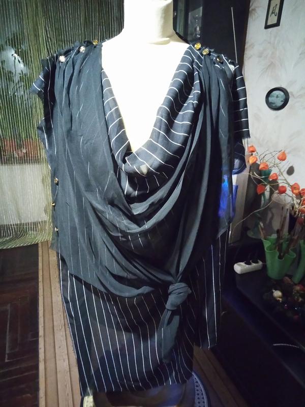 из приятного шелка в полоску и декором черным шифоном ассиметричная неординарная многослойная с лосинами короткими или длинными. с широкими брюками узкой юбкой до колен или просто на море на купальник ПО груди 64 см прямая длинная) длина разная) по спине 97.см впереди на 20-30 см корочеот одного бока к другому не жаркая полупрозрачная по моде начала 2000х не обработаны края не надевалась давно лежит в шкафу сделаю дополнительно фото и замеры . пишите спрашивайте отвечаю в течении суток пересылка после оплаты заказ с любой оплатой любой почтой Состав:вискоза c полиэстром