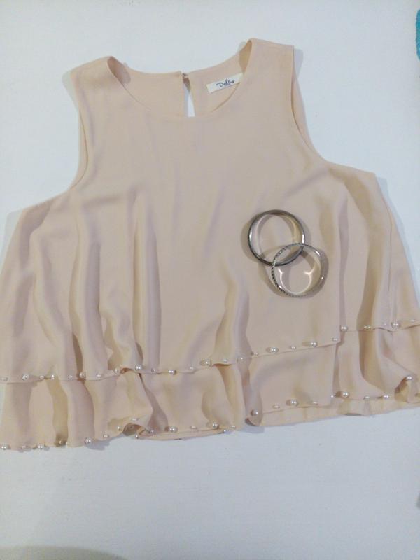 Нарядний топ розлітайка,по низу прикрашений бусинами під перли,два шари тканини,розмір М ,Л.Пог-50-52, довжина топа-51 см.