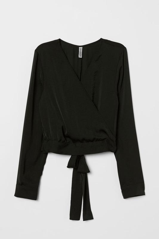 H&M Блузка из блестящей ткани с длинным рукавом. V-образный вырез и перед на запахе, а также разрез на завязках на спинке. Состав: Полиэстер 100% Размер: 40/12