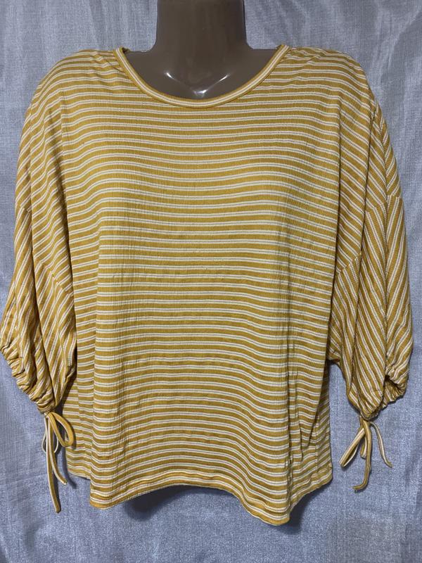 Трикотажная блуза со спущенными плечами, рукава на завязках. Замеры: длина - 58см., спущенное плечо - 25см., рукав - 24см., ПОГ - 57см., ПОТ - 52см., ПОБ- 54см.