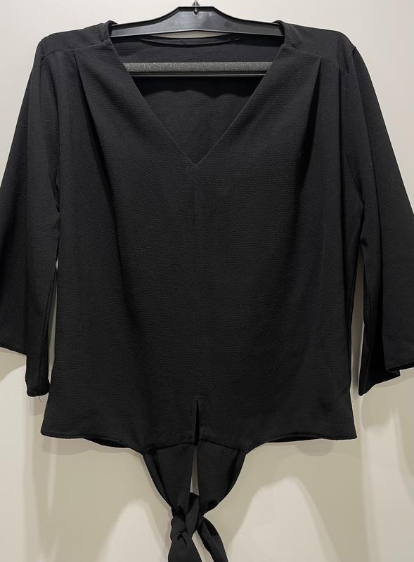 Чорна блуза розмір С, знизу на зав'язці, укорочений рукав