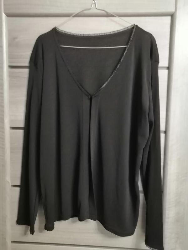 Кофта з тонкого трикотажу, без застібки, вгорі на гачку, довжина 62,пог58, плече 12, рукав 60