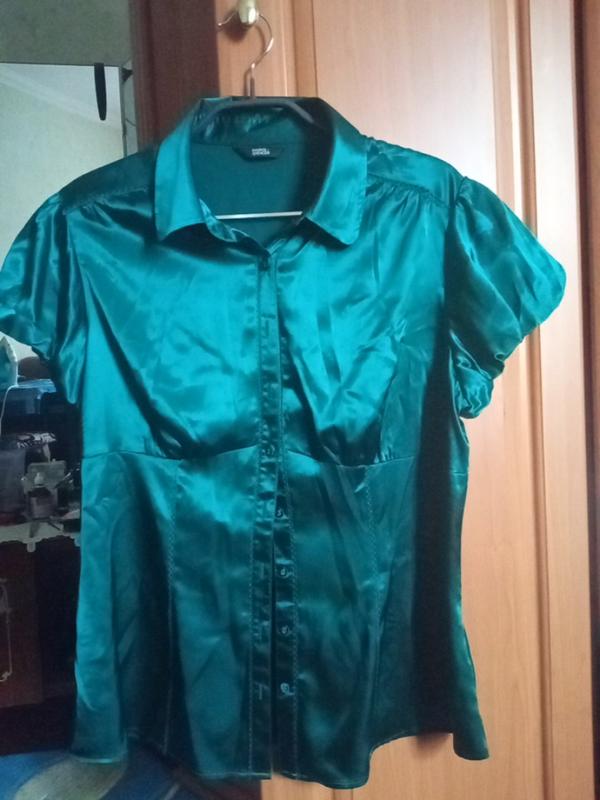 Блуза насичено зеленого кольору,на вигляд як атлас,рукава під резинку фонариком
