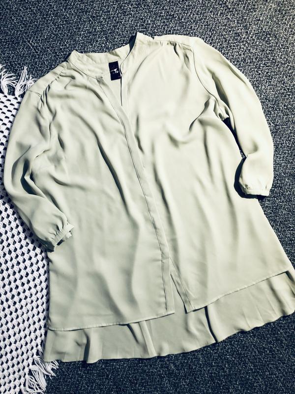Красивая блуза, рубашка TU. Размер 18/XXL. Состояние идеальное, красивого фисташкового цвета, красивая спинка плиссе. Длина по спинке 80 см, рукав от плеча 45 см, пог 64 см, по плечам 43 см. Фото на теле не делаю.