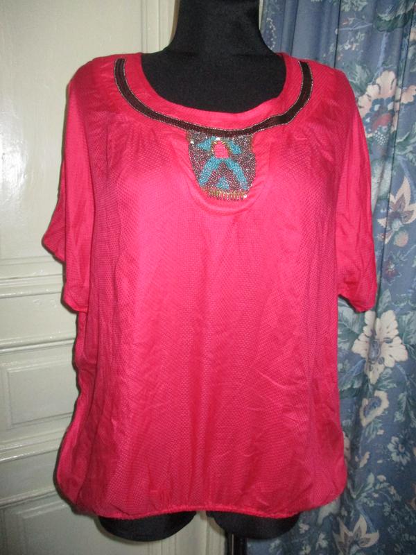 блузка малинового цвета.вискоза.ПОГ 70.длина 69 ширина по низу 69-в растянутом виде.низ на резинке