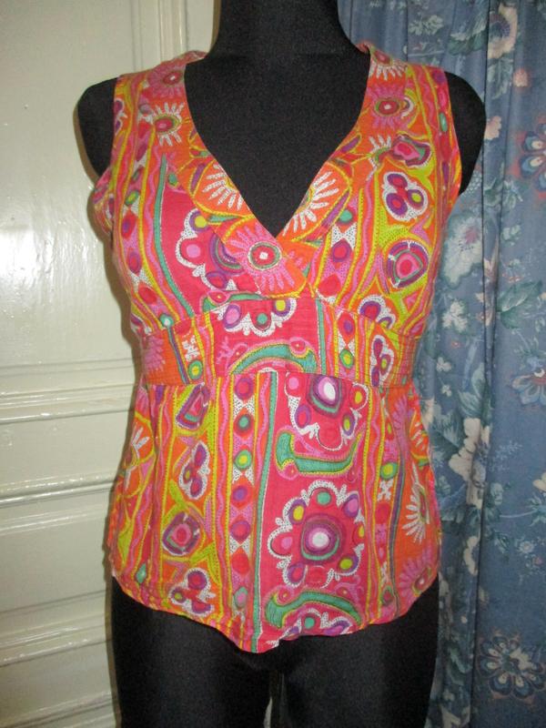 блузка цветная.хлопок.ПОГ 50.ПОТ 41.длина 57.сзади завязывается