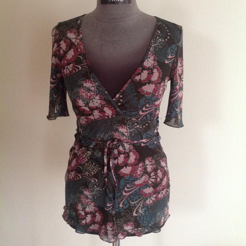 Красивая нежная футболка блузочка. ткань сетка тянеться легкая. Завязаваеться шнурком. Красиво сидит на фигуре и не полнит. Маникен размер 92/67/94