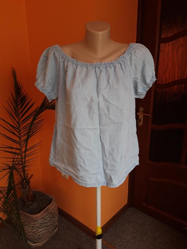 класна джинсова,приємне до тіла блузка,оверсайз, голубого кольору,ширина 56,довжина 53