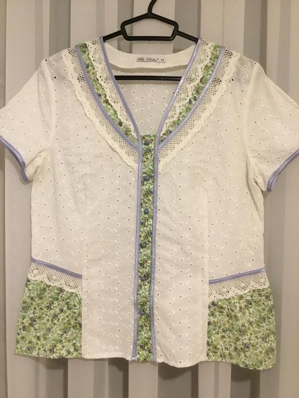 Не секонд!!! Плечи- 41 см; ПОГ - 50 см; Внизу - 56 см; Длина - 63 см; Лентяя блуза из хлопка размер 50.