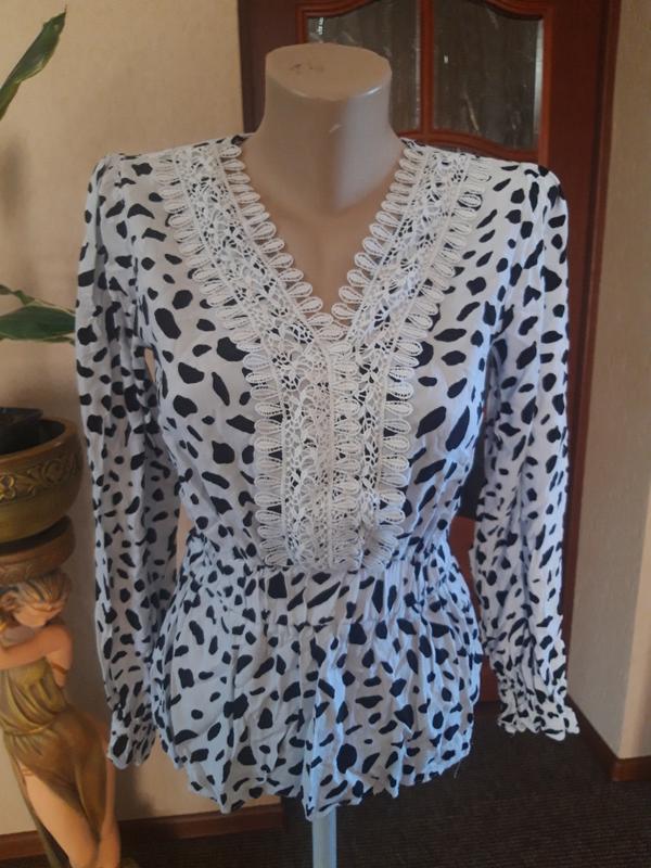 гарна блуза натуральна,плечі 33,пог 43,пот 29+,резинка,довжина 57,рукава 57
