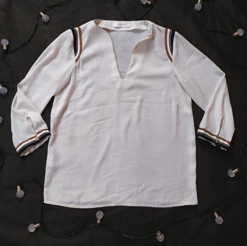 Блуза Promod , в гарному стані Розмір : 34 Довжина : 61 Плечі: 37 Півоб.грудей: 48 Рукав:39 Тканина: 94% viscose 4% polyester 2% fibra Ціна вказана відразу зі знижкою .