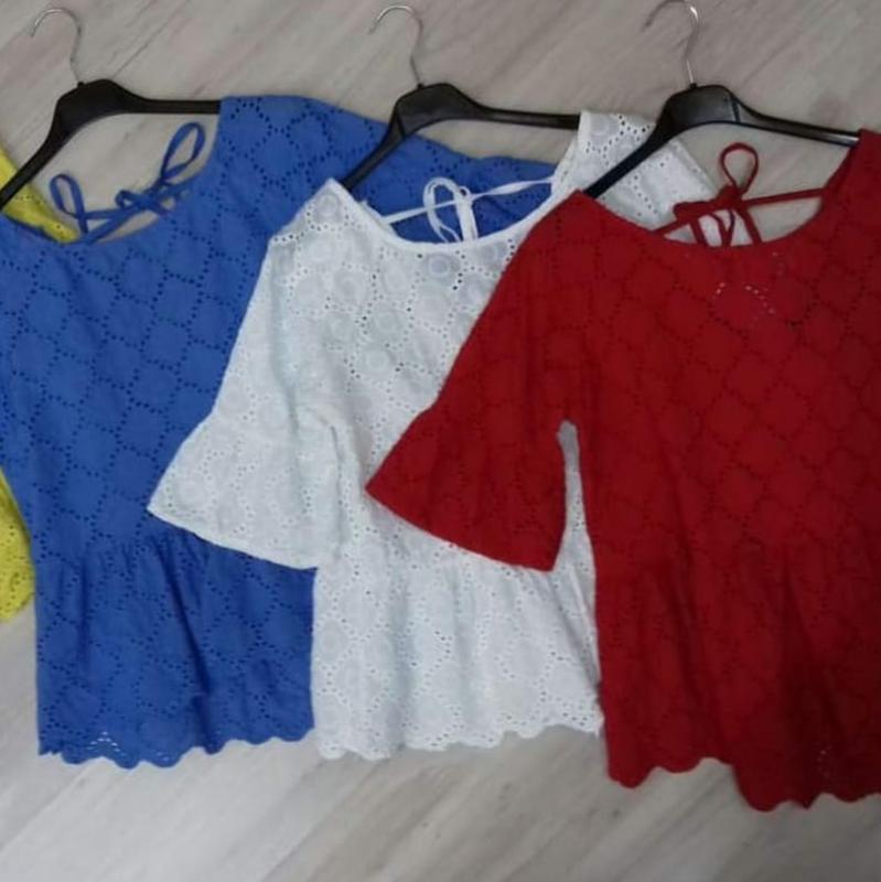 итальянцы блузка из прошвы на размер с-м,красная,белая