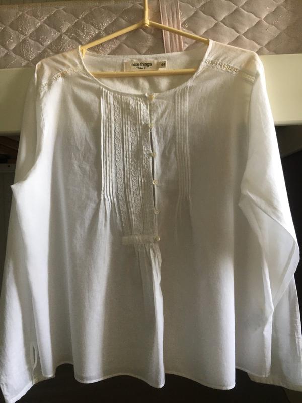 Блуза Nice things, размер 16 uk, 44 euro. Нежная легкая блуза будет очень актуальна в жаркие летние дни. Достоинства блузы: натуральная ткань, актуальный белый цвет, вставки из полосок изящного хрупкого кружева. Состав: 100% хлопок. Чувственность, нежность, приятные на ощупь органические текстуры — это то, что отличает испанский бренд Nice things. Длина по спинке 59 см, ширина в подмышках 59 см, длина рукав 58.5 см. В состоянии новой.