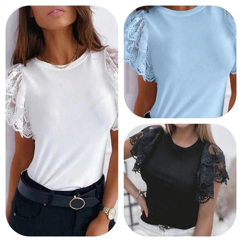 Блуза Модель: с.од6314,ткач,вл Фабричный Китай Цена:510 грн Размер: универсальный (42-46) Ткань: трикотаж + кружево Обхват груди: до 90-105 см Длина: 57 см Цвет : чёрный, белый,голубой, малиновый