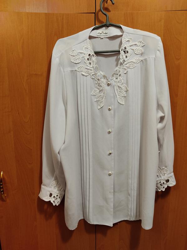 женская блуза-рубашка размер XL, из креп шифона с вышивкой в районе горловины и на рукавах, рукав 61см, длинна по спине 74 см, ширина по груди 60 см.