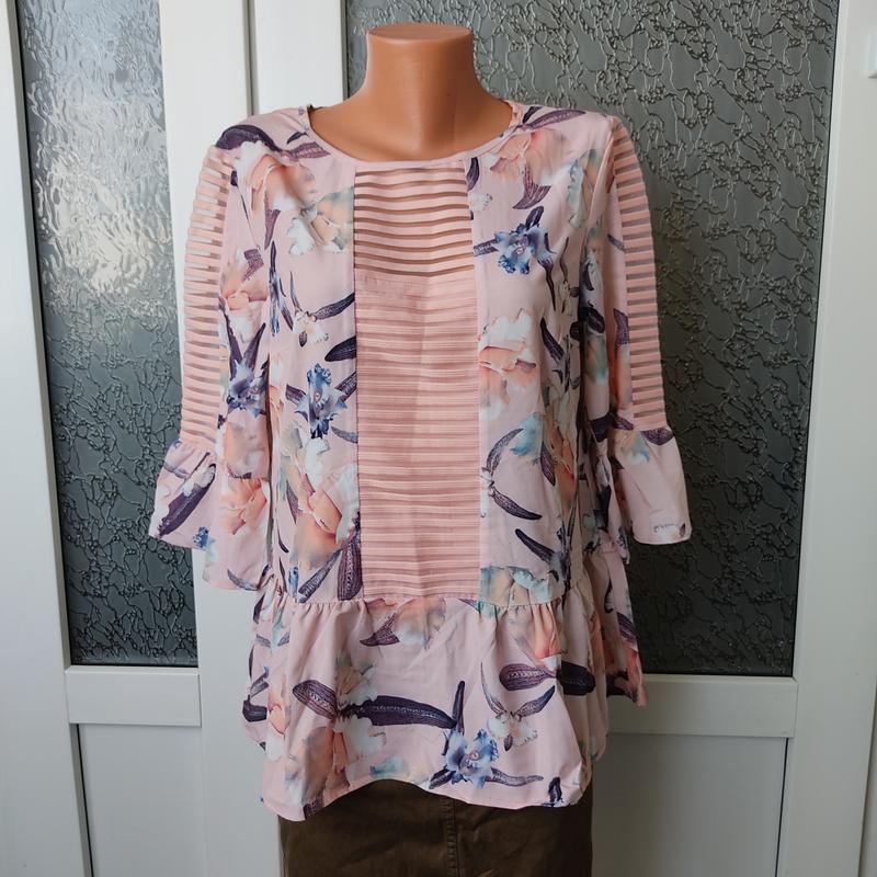 Розмір 50 Пог 52 см Довжина 63 см з прозорими вставками Спереді теж прозора вставка, але там де бюст, прикриті тканиною. Рукавчики 3/4 Тканина типу софту, легенька Не парить Всі фото мої власні Відправка Укрпошта, нова пошта, Meest