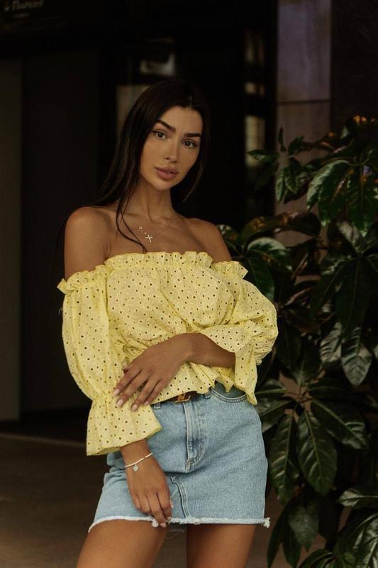 Блузка FN-1104 Размеры: 42-46 Цвет: белый, желтый, бирюза Ткань: прошва